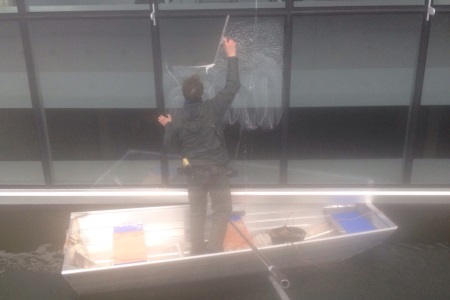 Hierbij streven wij erna om met eigen materialen te werken. De meeste machines waarmee we werken hebben we zelf in eigendom, waaronder een eigen hoogwerker en hogedruk-unit. Tevens beschikken wij over een speciaal werkponton waarmee we werkzaamheden vanuit het water kunnen verrichten. Moderne gebouwen hebben vaak glazen puien tot aan het water waardoor glasbewassing vaak moeilijk uitgevoerd kan worden, bij ons is dit geen probleem.